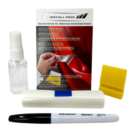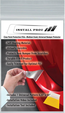 This is a Self-Healing, Clear Paint Protection Film Rear Bumper Protector; designed to help protect the bumper on your car from being damaged while moving items in and out of the trunk of your car, truck or SUV. The kit includes 1 piece of clear paint protection film that is 4.25”x50”, the installation tool, and an installation video. The product is universal, so you will need to trim it for the optimal fit on each vehicle. Installation requires that you thoroughly clean the surface that it will be placed on. Our clear paint protection film is a very durable, self-healing, 8 millimeter thick clear coated urethane film that helps preserve your vehicle's finish. It helps protect against rock chips, scratches and weathering. It is virtually invisible and clear-coated to help make it resistant to yellowing and staining. Once applied, no special care is required. Installation is easy, and we provide detailed installation videos to help make installation even easier.