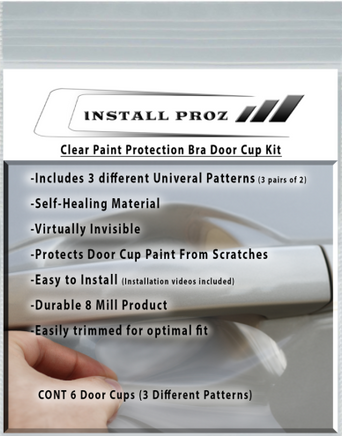 This universal, self-healing, clear paint protection door cup kit is a very durable, self-healing, 8 mil thick clear coated urethane film that helps preserve your vehicle’s finish. It helps protect door cups against scratches and scuffs caused by fingernails and rings. It is virtually invisible and clear-coated to help make it resistant to yellowing and staining. Once applied, no special care is required. After installation, wait 24 hours before taking your vehicle through a car wash. Installation is easy, and we provide detailed installation videos to help make installation even easier.